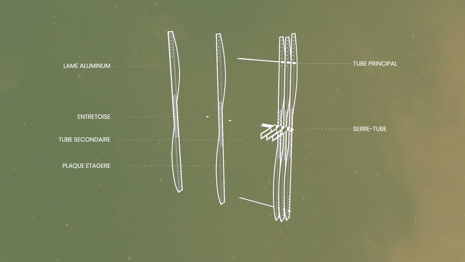 Les lames sont extrudées puis découpées au laser, profitant de la polyvalence offerte par l'aluminium en termes de profils d'extrusion.